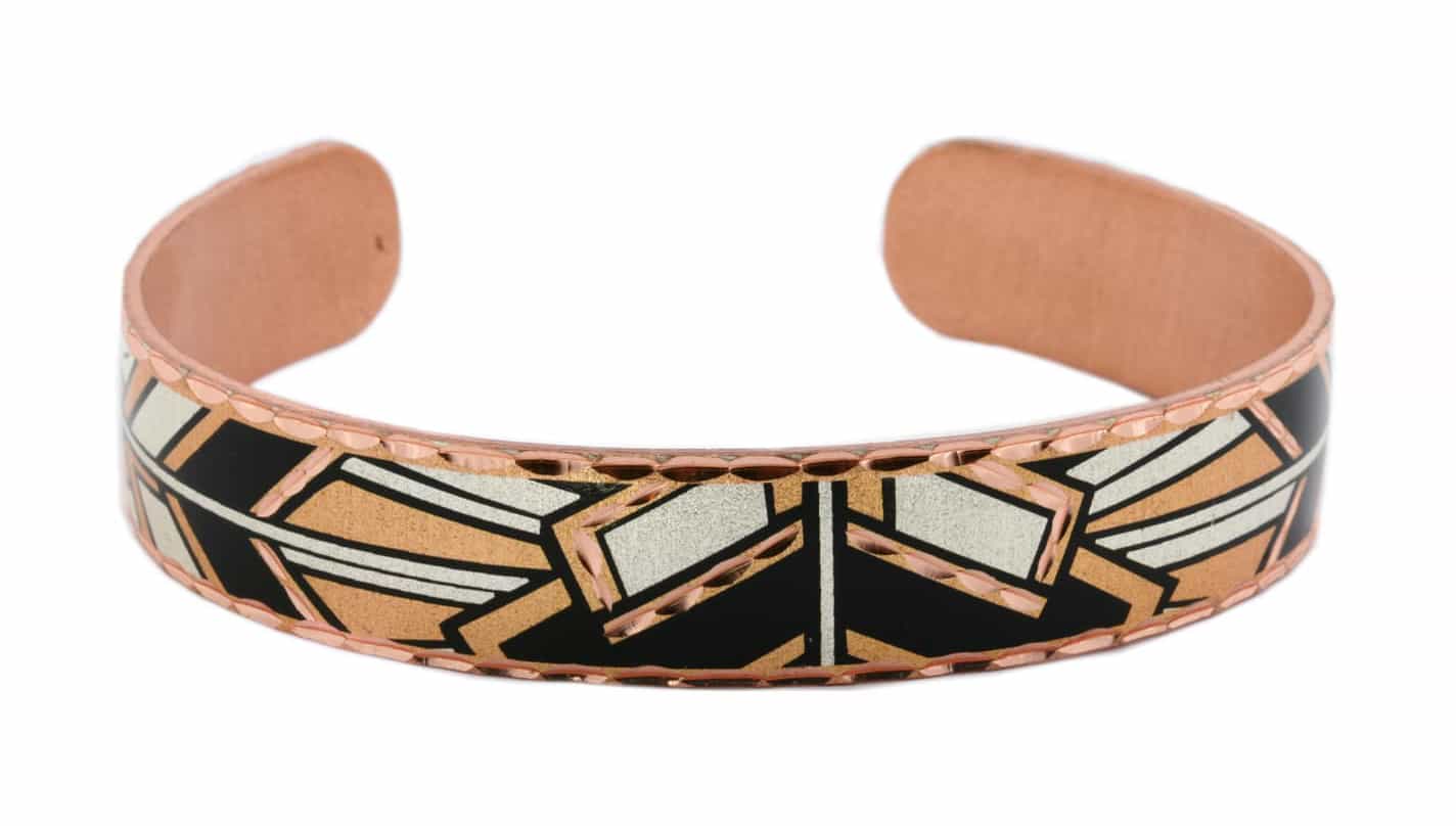 Abstract art handmade bracelets are created in earth tones silver and copper with a black accent. Buy abstract design cuff bracelets so pretty and feminine and you will not see them anywhere else. Fascinating and unique abstract jewelry bracelets are adjustable and protected with many layers of clear acrylic finish to protect them from tarnishing. They are about 13 mm wide and about 158 mm long ( about 0.5 x 6.23 inches ). To wear for a casual evening out, you found the perfect cuff bracelets for your unique fashion style. You will be attracted to the attention to detail and workmanship at a very reasonable price.