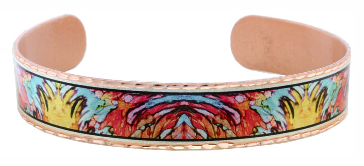 Alcohol ink jewelry bracelet artfully designed and crafted in red, blue & golden color Alcohol ink art. Buy amazingly stylish & unique Alcohol ink copper jewelry bracelets. Show the world your love for art by wearing this amazing artisan-crafted colorful alcohol ink bracelet that will be one of your timeless treasures.