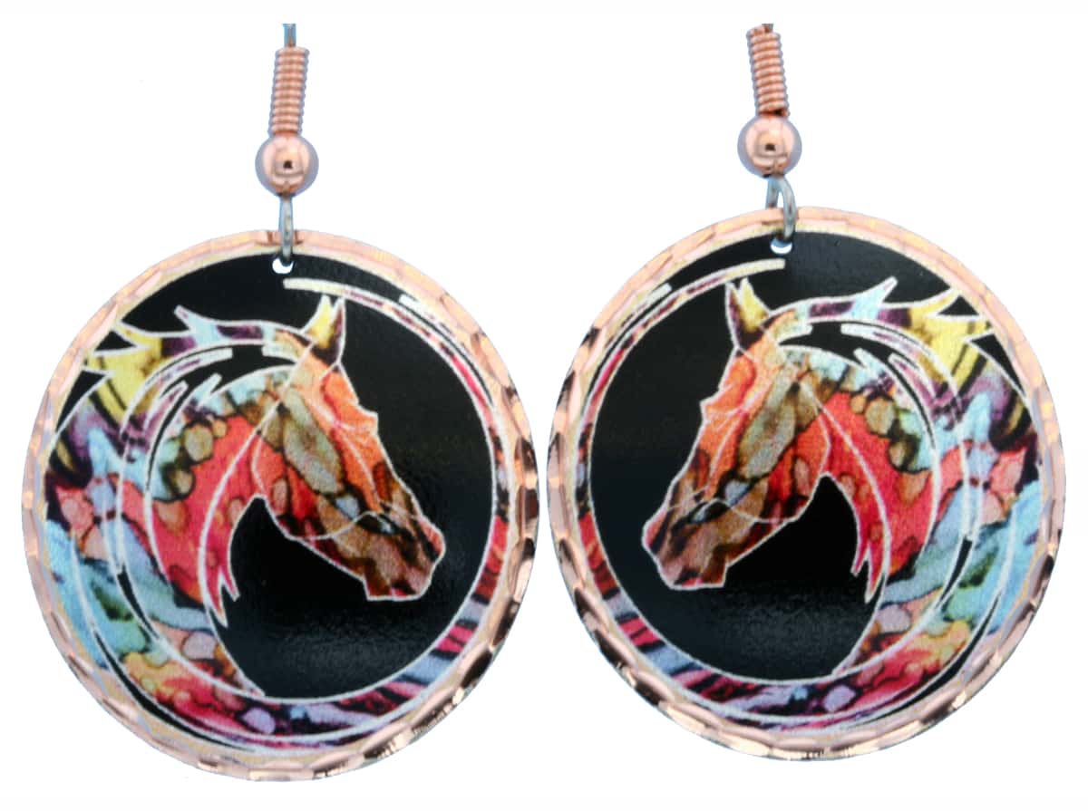 Alcohol ink jewelry horse earrings perfect choice for horse lovers, handmade from copper in colorful horse artwork with a black background. Buy unique horse earrings that you will never see anywhere else. These amazing oval shape horse earrings are 26 mm X 28 mm ( about 1 inch) in size.