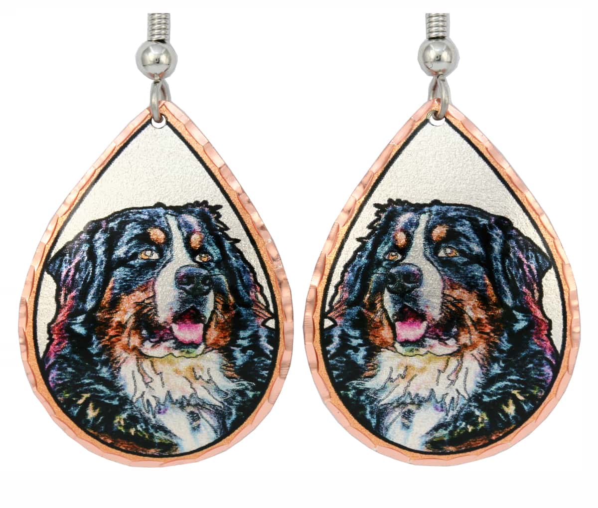 Individually handcrafted from copper, silver plated and diamond cut to sparkle, these colorful Bernese mountain earrings are the perfect unique gift for dog lovers. Copper Reflections is the best online shop for handmade dog jewelry that is creative, original, pretty, and fun to wear.
