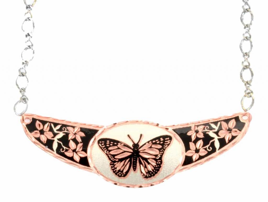 Unique handmade chokers are individually silver plated and diamond cut in this butterfly jewelry design. Copper Reflections have been specializing in handmade jewelry in the United States and Canada since 1985. The artistry and uniqueness of our designs set us apart from all others.
