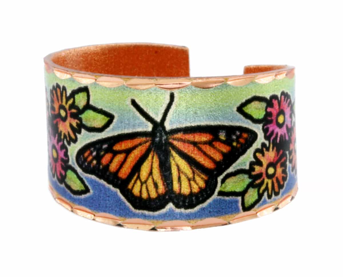 Monarch butterfly rings are handmade from copper in colorful butterfly and flowers design. Buy adjustable butterfly rings to accentuate your shine. Adjustable handmade butterfly rings are about 1.3 cm – 0.4 inches wide in the middle and fit most fingers sizes 6 to 10. No polishing is required as the copper rings are protected from tarnishing with many layers of finishes. We also dip them into lacquer for thicker and better protection.