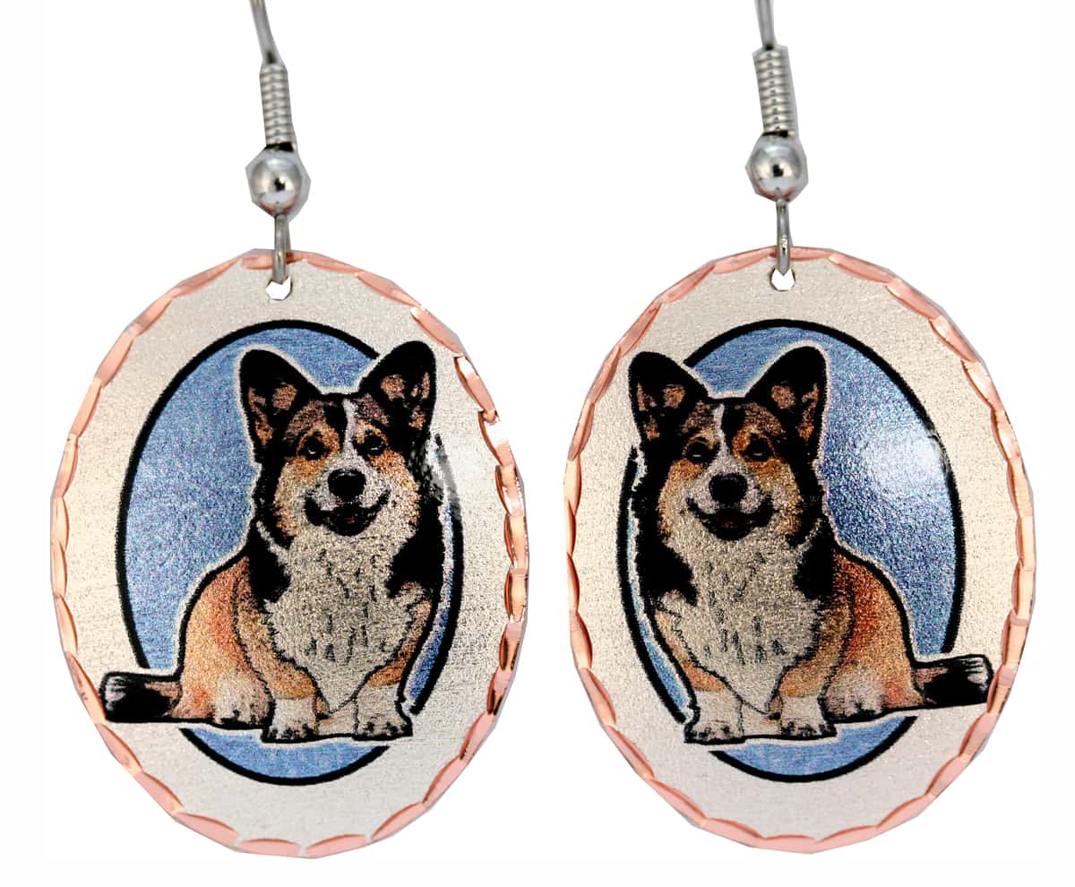 Cardigan welsh corgis earrings are a great choice if you love dogs. Handmade from copper in a lovely dog design with vivid colors. Buy quality and original welsh corgis earrings. These pretty oval shape earrings are 22.5 mm X 29 mm ( about 0.9 x 1.15 inches ) in size. Our lightweight earrings are always a pleasure to wear without the pain of heavy cast earrings. All our handmade earrings have surgical steel hypoallergenic ear wires so you can enjoy them without any discomfort. If you love dogs you will love these amazing earrings that are expensive looking but affordable.