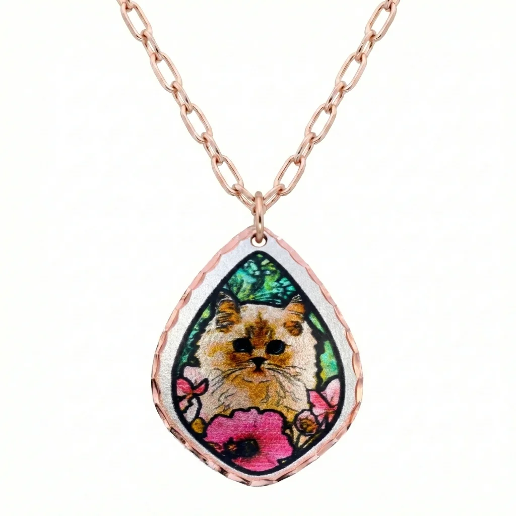 Add a vibrant pop of personality to your style with our Colorful Handcrafted Copper Cat Necklaces. Meticulously made from silver-plated pure copper, these adorable pendants feature exclusive, colorful artwork and hand-carved diamond cuts that catch the light beautifully. Suspended on a gorgeous 20-inch rose gold-plated chain and sealed with a protective acrylic finish, this no-polish necklace offers a luxurious, artisan look without the high price tag.