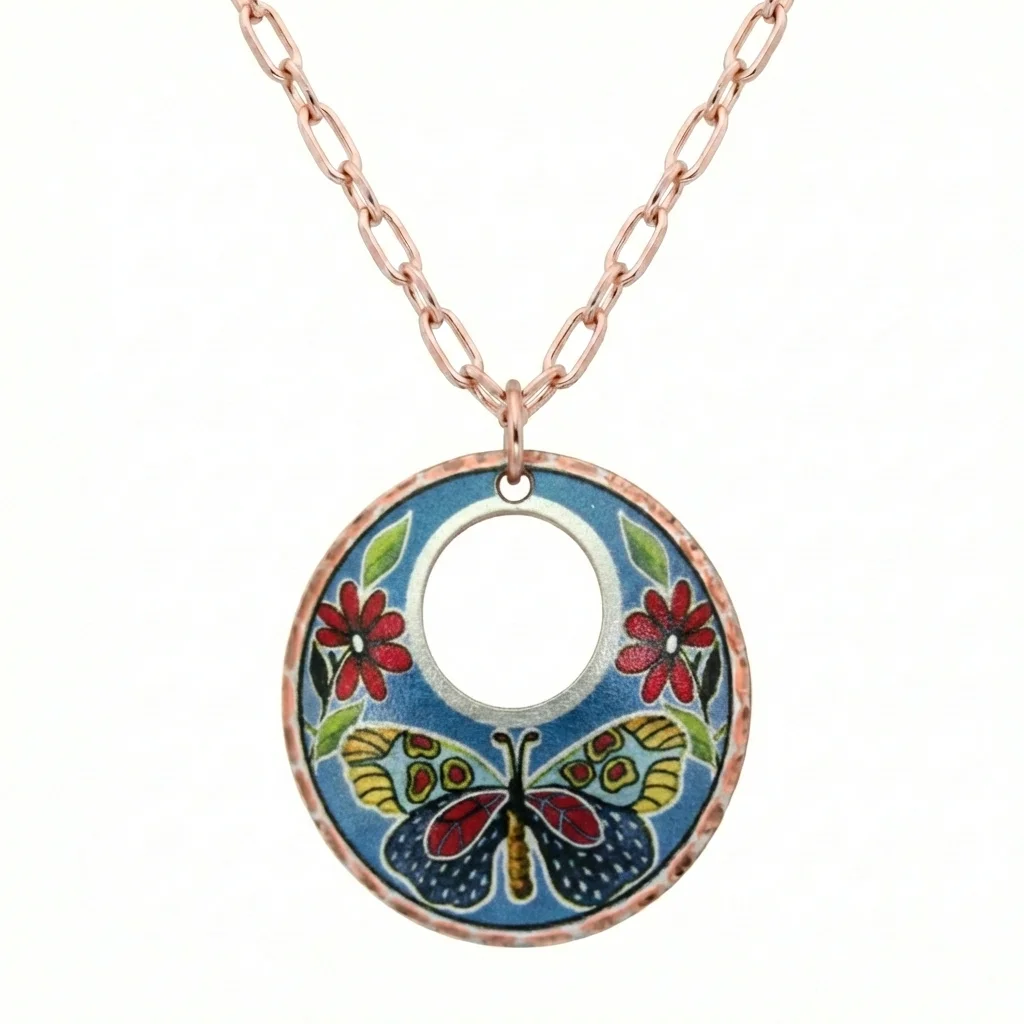 Since 1985, Copper Reflections has been creating original designs and proprietary jewelry-making techniques, which make our jewelry truly unique. This beautiful butterfly pendant is meticulously handmade from pure copper or silver-plated copper and brought to life with vibrant, colorful artwork. To give it a luxurious, high-end look, each piece is diamond cut by our skilled artisans to make the copper sparkle and catch the light from every angle.