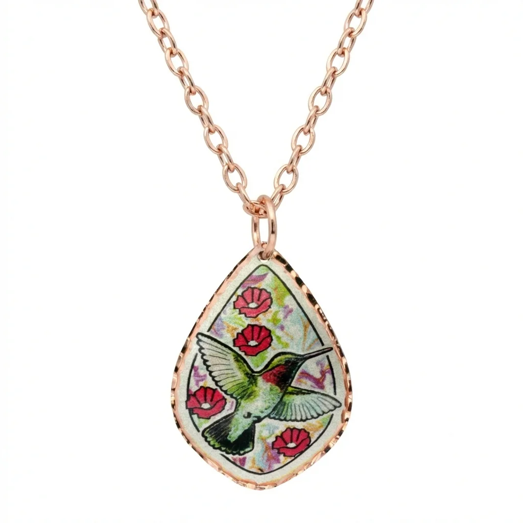 Step into a world of artistry and elegance with our Colorful flowers hummingbird necklace. Meticulously crafted by skilled artisans, each necklace embodies a unique blend of creativity and craftsmanship, taking 32 careful steps to bring this stunning piece to life. Designed to captivate and inspire, this copper hummingbird necklace not only showcases the beauty of handcrafted jewelry but also makes a bold statement that will surely impress your friends and elevate any outfit.