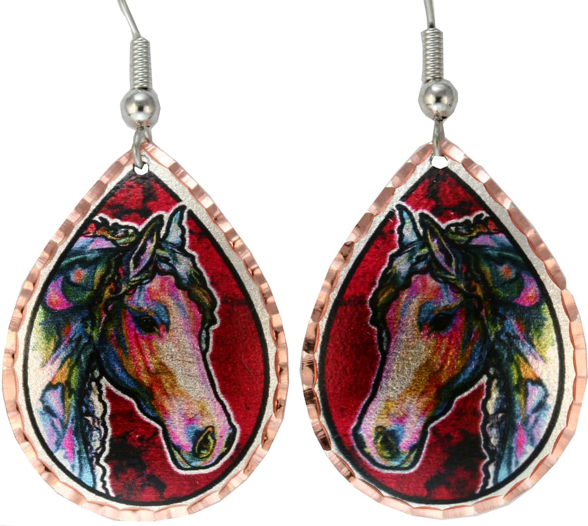 Exceptional horse earrings are handcrafted from an original watercolor painting by Lynn Bean. Bold and colorful these handmade earrings will be a favorite for every horse lover.