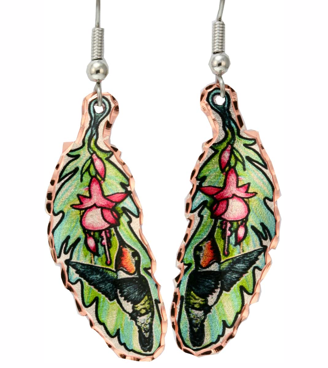 Hummingbird Copper Feather Earrings