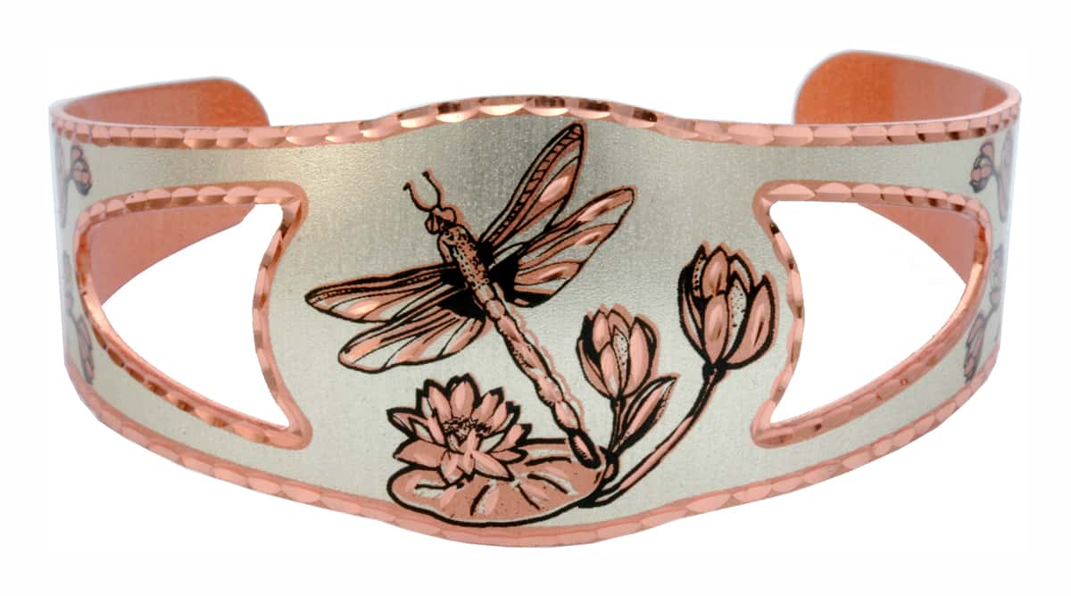 Handmade bracelets are offered in large selections of nature jewelry designs including this unique bracelet created in water lilies and dragonfly jewelry theme. The dragonfly symbolizes change in the perspective of self realization and the understanding of the deeper meaning of life.
