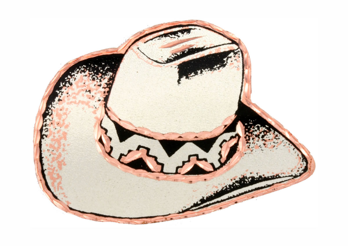 Handmade copper brooches are handcrafted in western jewelry artwork. These exceptional unique brooches are silver plated and diamond cut by skilled artisans on this cowboy hat brooch. If you are looking for a special gift for your friends to show them how much you care, Copper Reflections has wide collections of unique western jewelry to choose from.