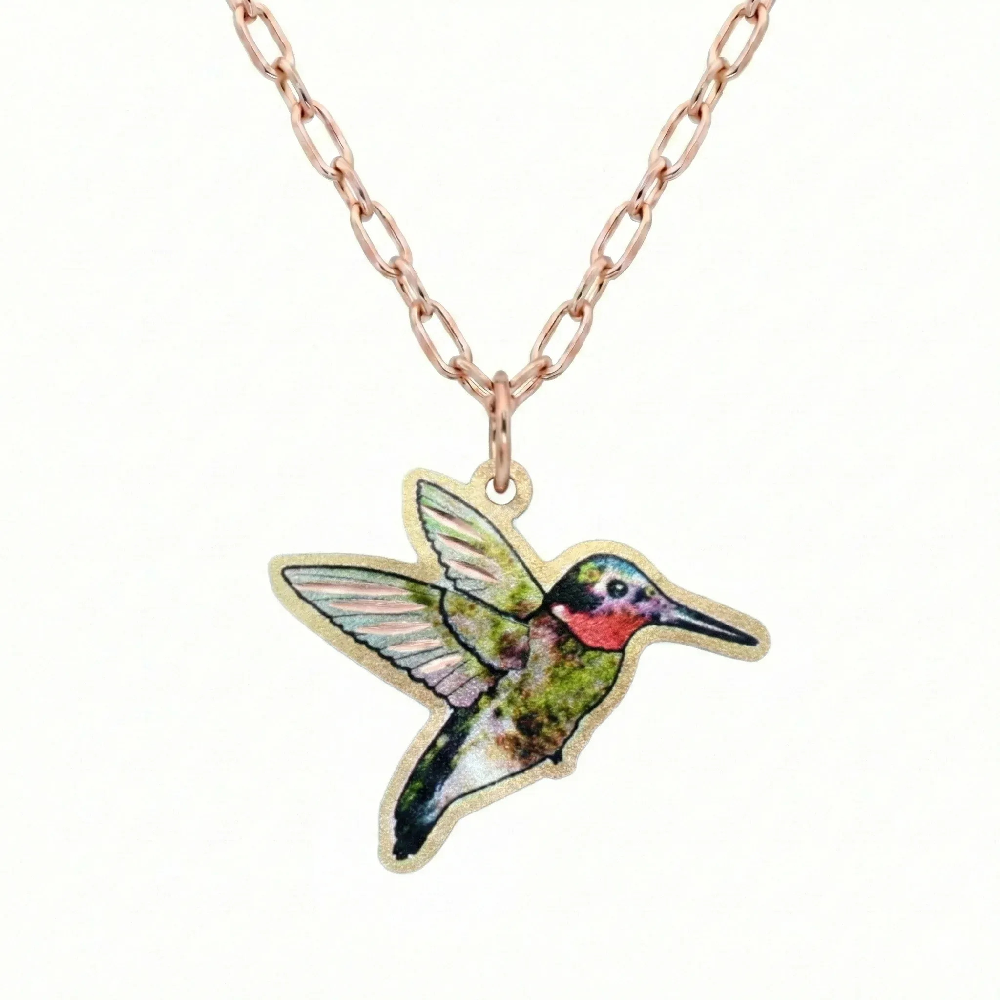 The perfect choice for casual to elegant attire, this charming cut out amazing hummingbird necklace can be worn with anything from jeans to that little black dress. It is always the perfect accessory for any occasion, adding a touch of sophistication and fabulous style to your ensemble. The hummingbird is a fascinating creature that universally symbolizes boundless energy, vitality, and the sweet, pure joy of living in the present moment. Wearing this delicate and enchanting cut-out ruby-throated hummingbird necklace is a wonderful way to channel positivity and vibrant grace, making it an exceptional gift for yourself or a special someone who brings light into your life.