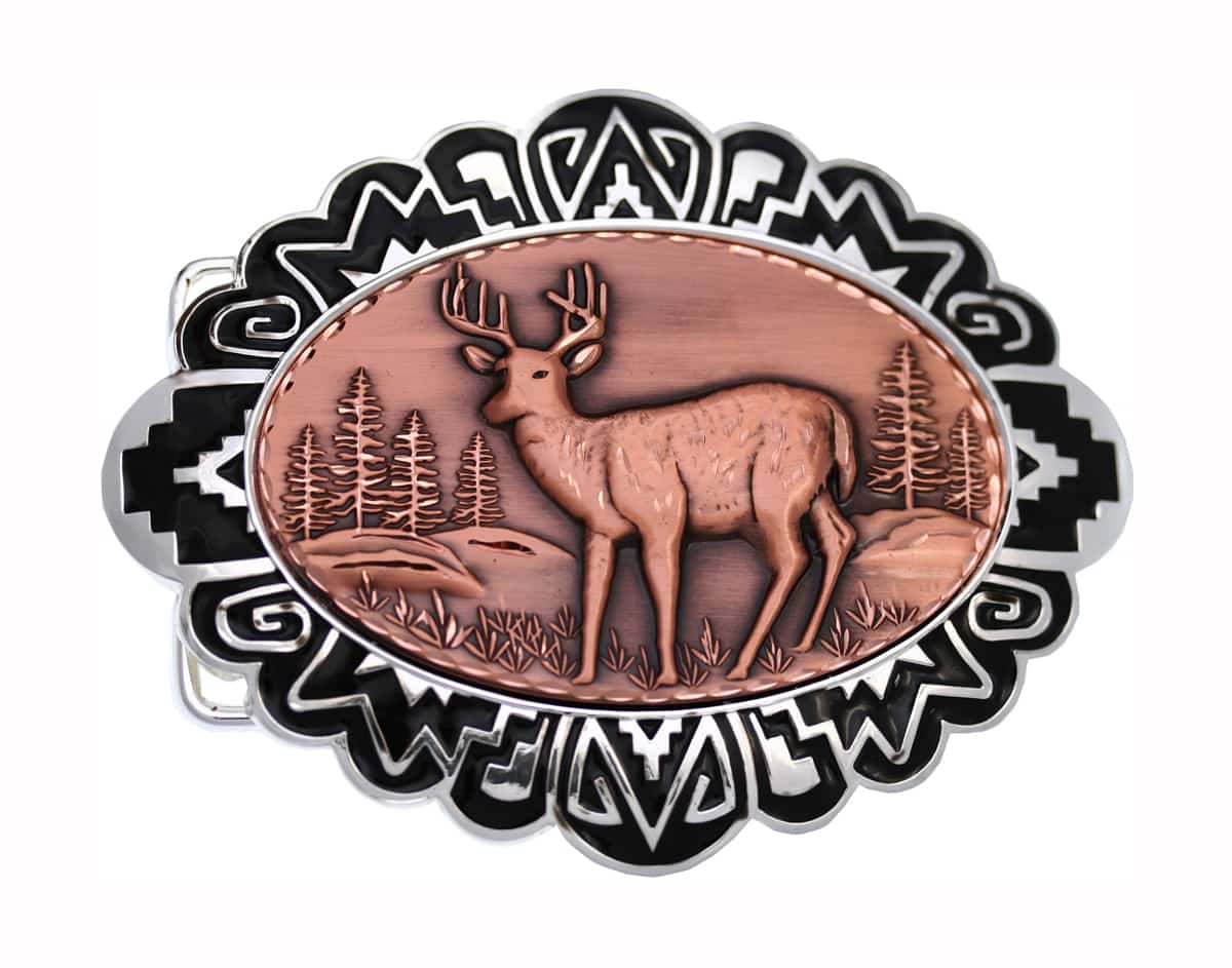 Cowboy belt buckles feature copper artwork that is embossed and diamond cut in American wildlife deer stag scene. These exceptional deer belt buckles will make unique mens gifts perfect for any occasion. With over 25 years of business experience Copper Reflections has been making handmade copper gift items that could be the perfect choice for your gift shop.
