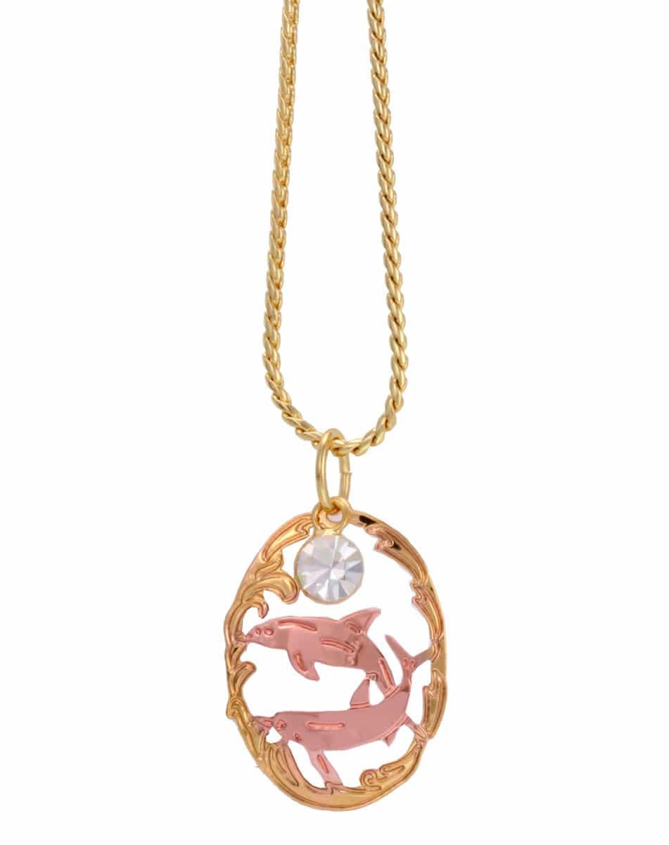 Dolphin necklaces handcrafted by the skilled artisans in fine craftsmanship from copper with gold plated border. If you love dolphins this unique dolphin necklace is just for you. You will be impressed with the immense selections of our dolphin jewelry necklaces.