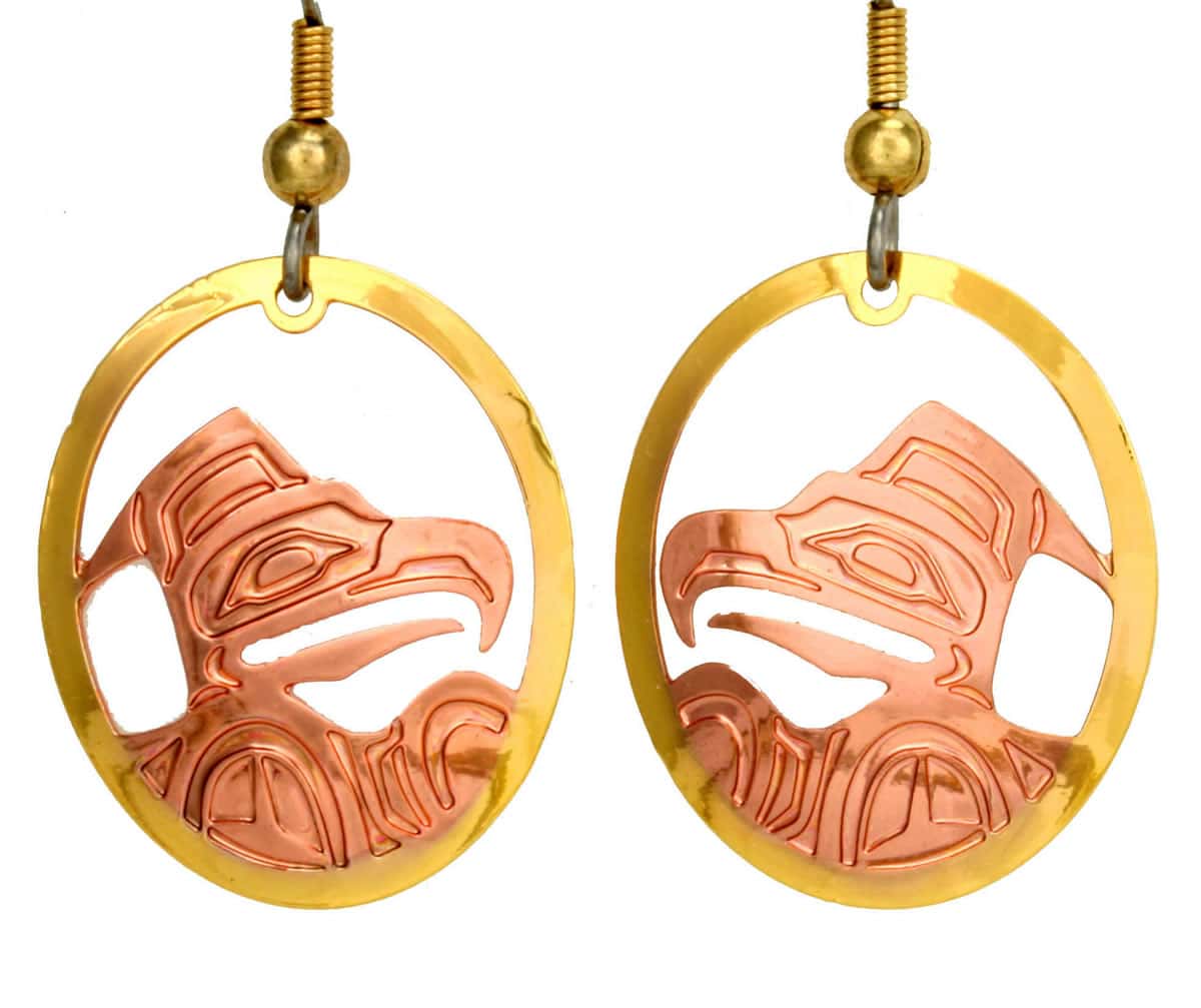 Step into a world of elegance and style with our stunning cut out gold and copper Native eagle totem etched earrings by Copper Reflections. Crafted with meticulous attention to detail, these lightweight earrings are designed to bring joy and beauty to your everyday style. Experience the difference between our two-tone plated earrings, combining the timeless allure of gold and the rich warmth of copper. With their durable and scratch-resistant finish, these earrings will effortlessly withstand the test of time. Rest assured, they are nickel-free and lacquer-coated to prevent tarnishing, making them safe and maintenance-free.