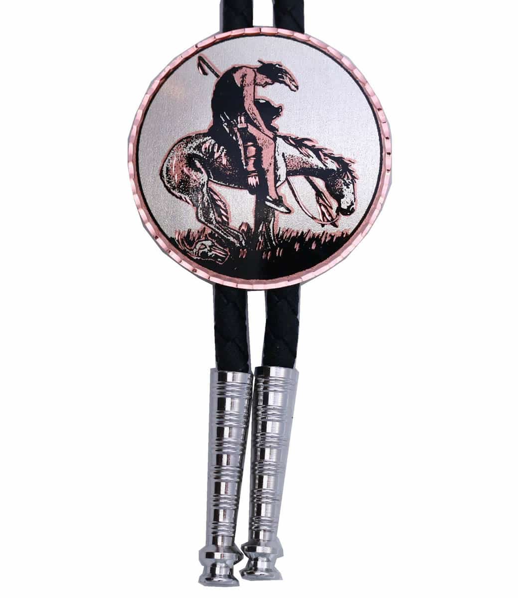 End of the Trail Bolo Tie is sold with braided synthetic leather cord and silver color bolo tips. Buy the exquisite end of the trail bolo tie handcrafted from copper silver-plated and diamond cut for a western fashionable look. Buy western bolo ties wholesale.