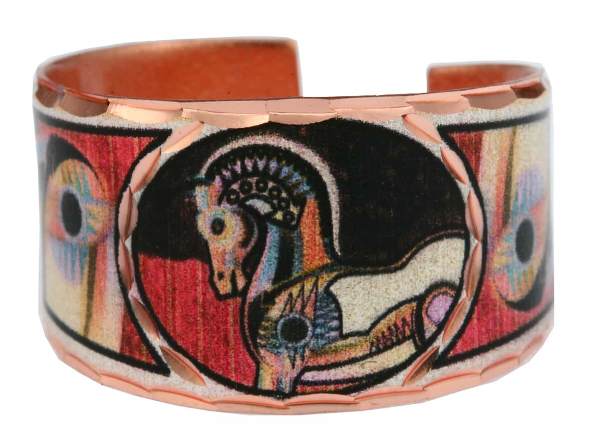 This Equus horse artwork by Bob Coonts on these handmade horse rings combine beautiful colors and exquisite design to create these stunning unique rings that are silver plated, diamond cut on copper and coated with clear acrylic finish so no polishing is required.