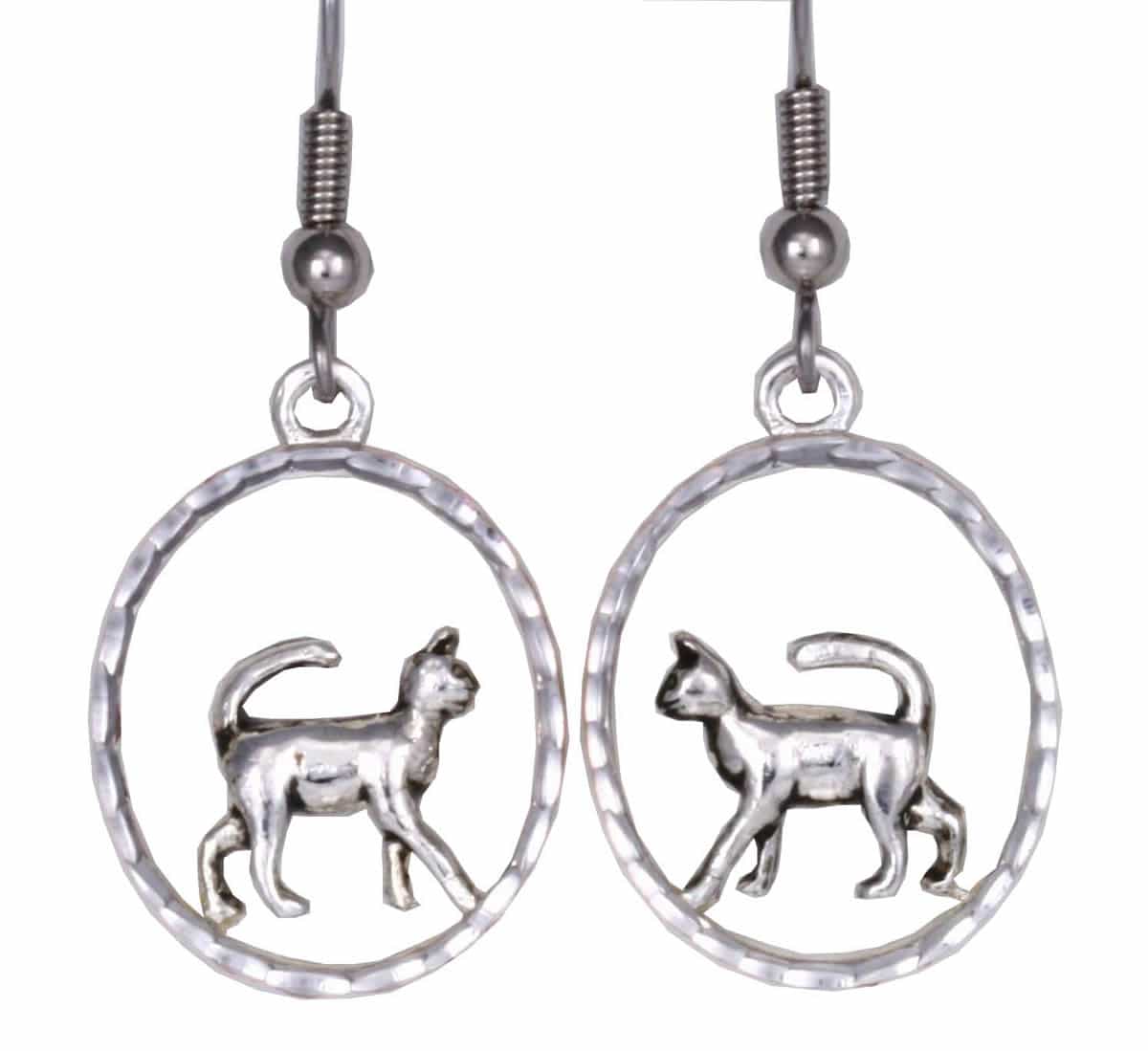Fashion Cat Jewelry Earrings, Cut-out fashion cat earrings are crafted in silver-plated metal with a walking cat design and a diamond-cut border for sparkle. Buy cat earrings with stylishness and originality, just what you have been looking for. Our lightweight earrings are always a pleasure to wear without the pain of heavy earrings. All our handmade earrings feature hypoallergenic surgical steel earwires, so you can enjoy them without discomfort.