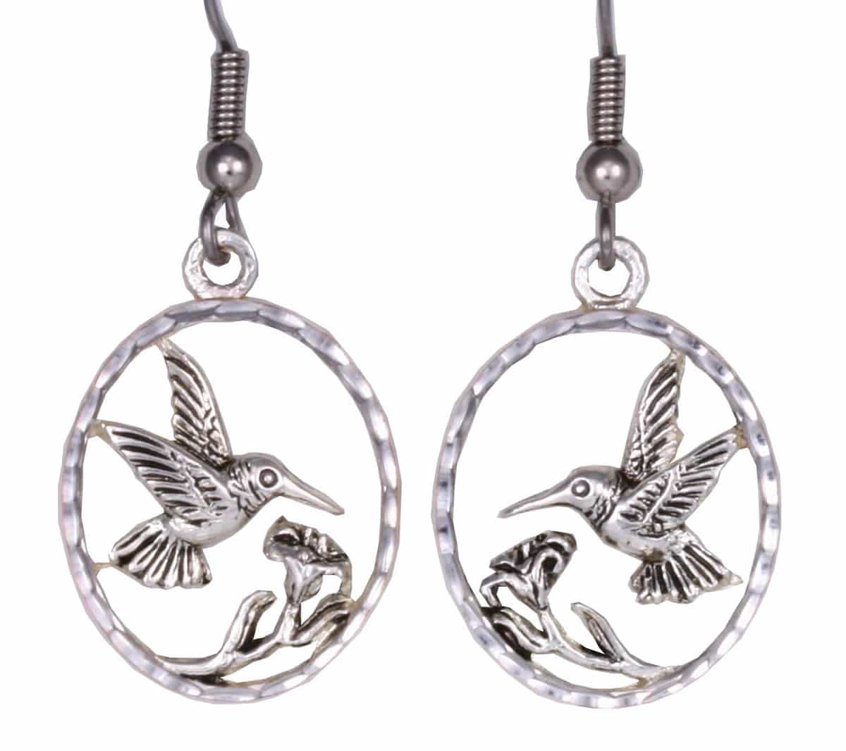 Cut out fashion hummingbird earrings are created in a silver plated hummingbird design and diamond cut around the border to sparkle. Buy fashion earrings that are a perfect choice if you need a little sparkle to make life a little glamorous. We use only the best quality surgical steel hypoallergenic ear wires so you can safely wear them. All our jewelry is nickel free. These distinctive hummingbird earrings will make unique gifts for nature lovers. Copper Reflections has been providing a wide selection of fashion jewelry with reasonable prices and great quality in the United States and Canada since 1985.