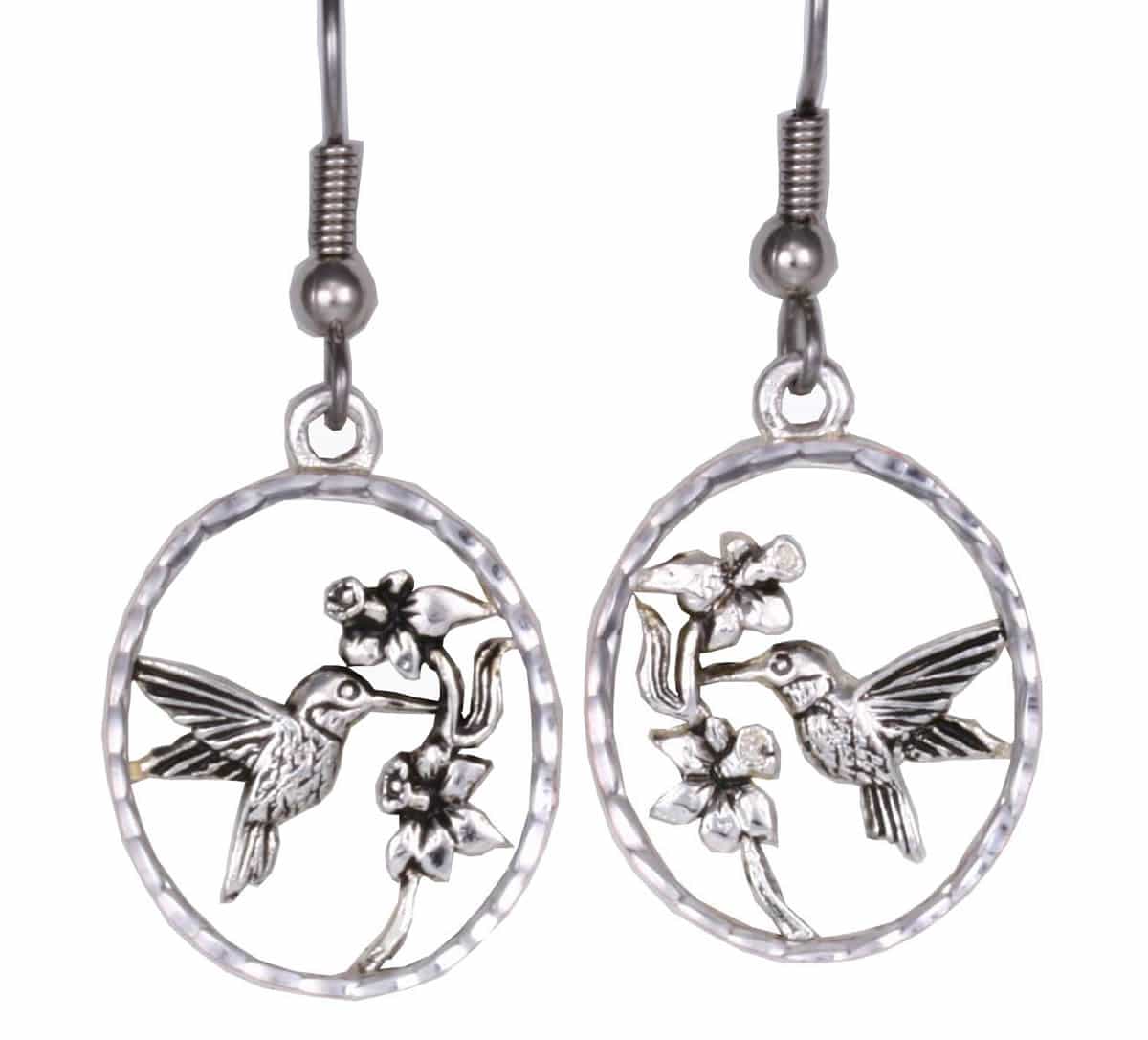 These gorgeous hummingbird earrings in cut-out, antique silver plated and diamond cut to sparkle. Perfect fashion jewelry created in amazing hummingbird design to add shine and sparkle to your style.