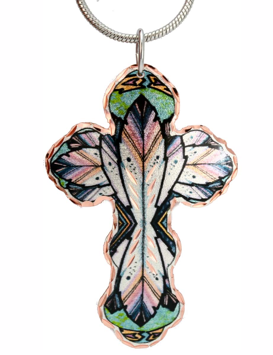 Step out in style with our stunning Feather Artwork Copper Cross Necklace. Handcrafted with love and attention to detail, this unique piece is sure to turn heads everywhere you go. Each pendant is meticulously created from copper, silver plated, and diamond cut to bring out the radiant luster of the copper. At Copper Reflections, we pride ourselves on creating high-quality handmade jewelry that makes a statement. Our artisans pour their finest craftsmanship into each piece, ensuring durability and scratch resistance that lasts a lifetime. With our specially coated layers of lacquers, you won’t have to worry about tarnishing or the need for constant maintenance.