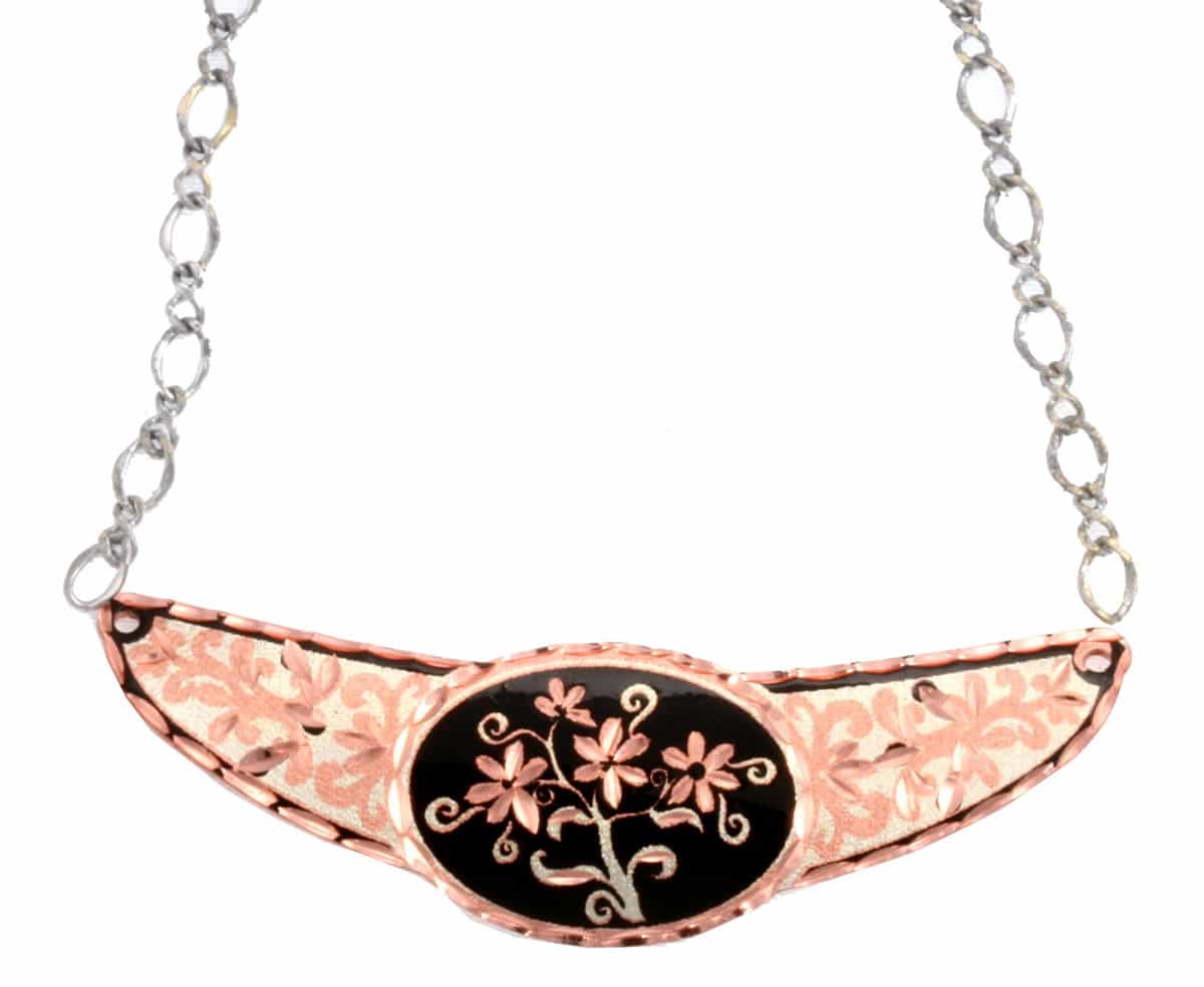 These unique handcrafted chokers are individually handmade, silver plated and diamond cut on copper in this daisy flower with black background. If you are looking for a unique gift for your friends to show them how much you care, Copper Reflections has wide collections of handmade jewelry to choose from.