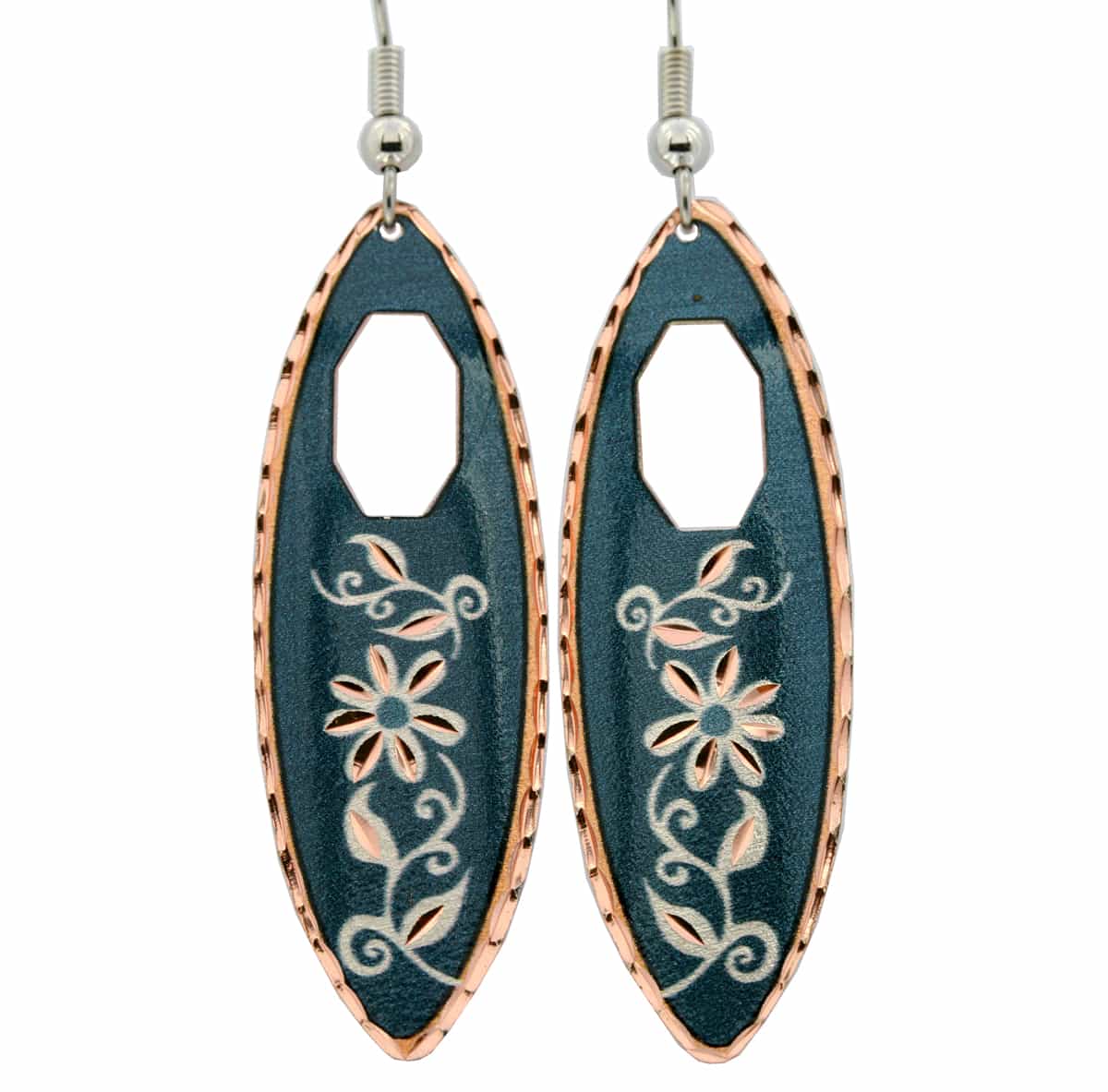 Teardrop green flower earrings are made from copper in a pretty flower design with dark green background. Shop pretty and fun-to-wear flower earrings. Remarkable long teardrop earrings artisan-crafted from copper in emerald green color with shining diamond cuts. You found the best feminine flower earrings that will never go out of fashion.