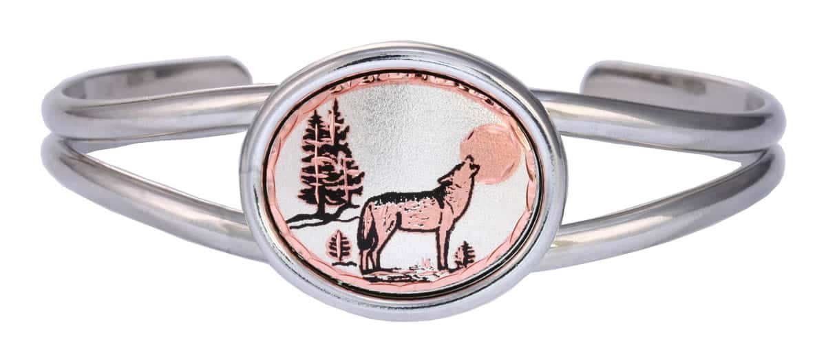 Handcrafted wolf bracelets are individually hand crafted on this exceptional wire bracelet. Wolves are friendly, social, free spirited and intelligent animals. Show your free spirit by wearing handcrafted artisan bracelet in wolf jewelry designs from Copper Reflections.