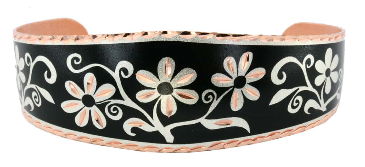 These beautiful bracelets are exclusively handcrafted by the artisans of Copper Reflections, silver plated and diamond cut on copper with flower design. We always strive to create and develop the most original and unique bracelets so our customers always have new designs to choose.