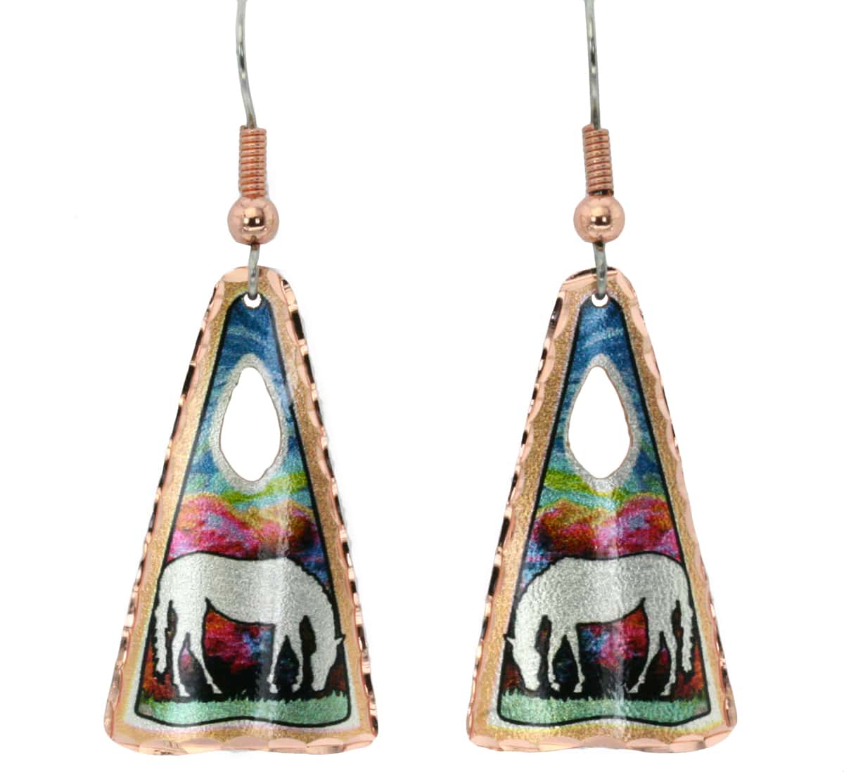 Horse earrings created in wide array of background colors that changes in a gorgeous harmony.