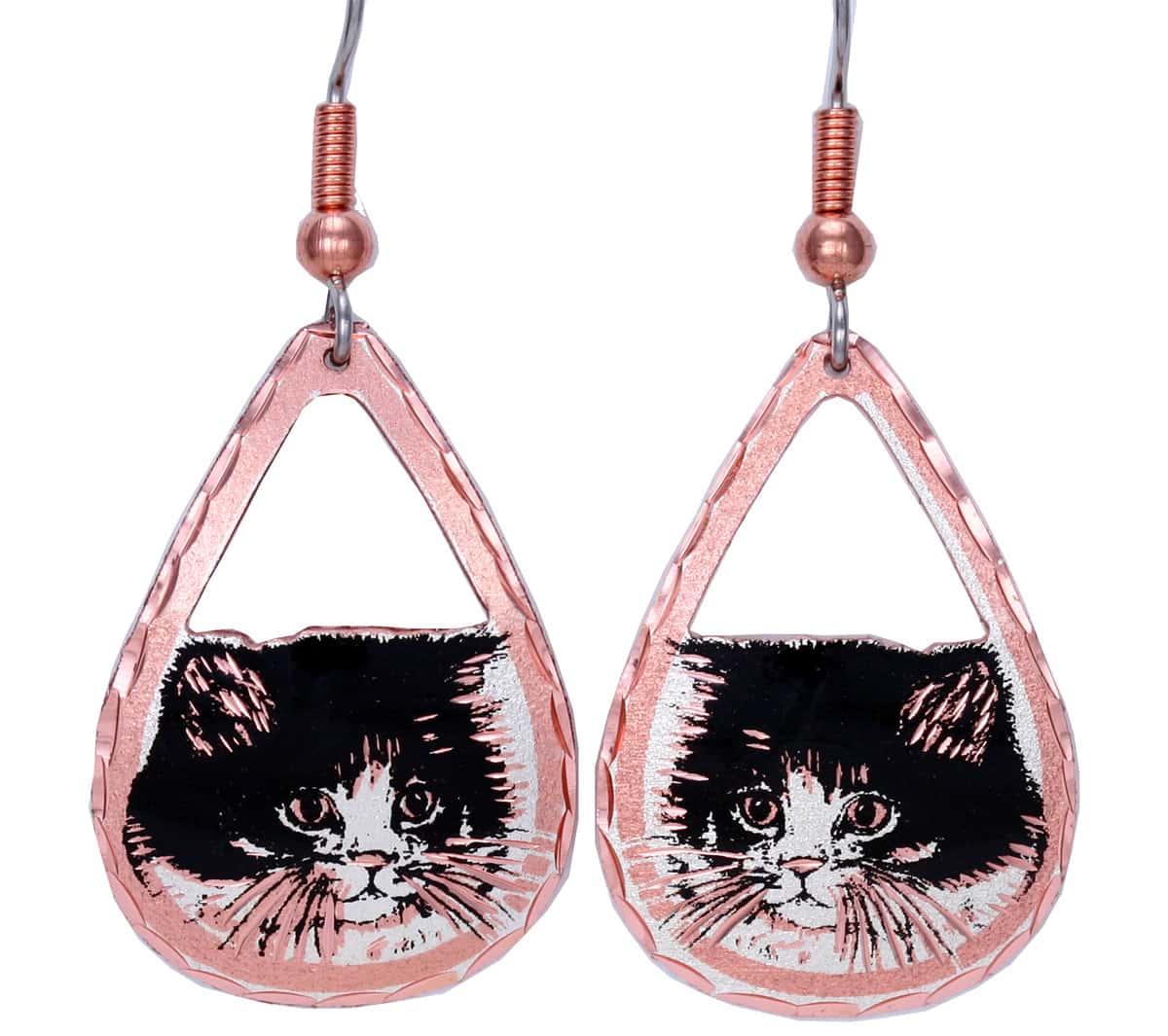 Discover the secret to trendsetting style with our stunning cut-out kitten earrings by Copper Reflections. Handcrafted from durable and scratch-resistant copper, these affordable and stylish earrings are designed to impress all your friends. Our earrings are nickel-free and maintenance-free, ensuring your comfort and peace of mind. The lacquer coating prevents tarnishing, guaranteeing long-lasting beauty. With hypoallergenic surgical steel ear wires, they are safe for even the most sensitive ears. Crafted with meticulous attention to detail, these lightweight earrings are a joy to wear all day long. The easy-to-put-on surgical steel French hook ear wires ensure a secure fit that won’t hurt your ears.
