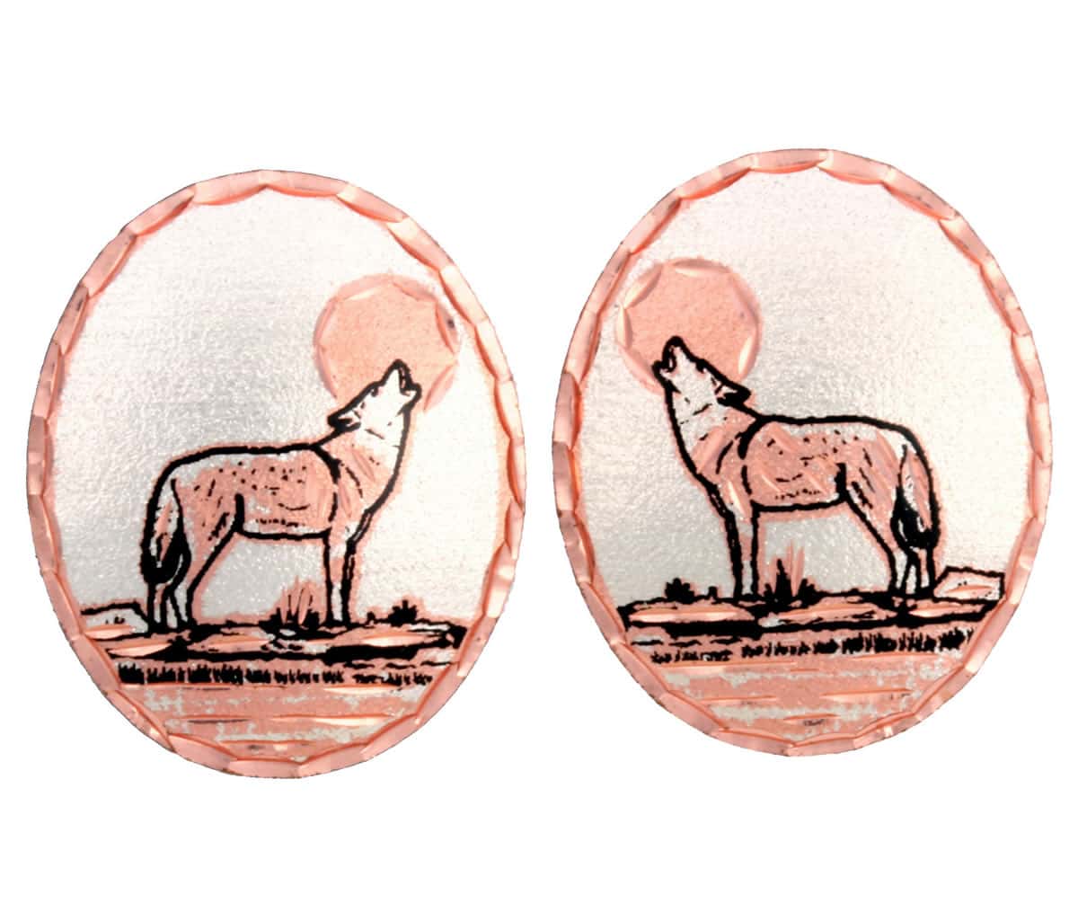 Howling wolf stud earrings made from copper accented with silver and black colors with diamond cuts to sparkle. Shop affordable wolf stud earrings. Women’s handmade stud earrings are the best choice if you are looking for extraordinary and elegant jewelry that no one else has.