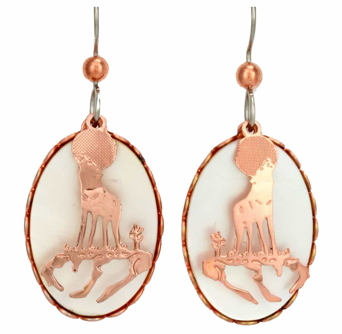 Mother of pearl wolf earrings are made from copper bezel with mother-of-pearl inlay and dangling cut-out copper designs. Shop trendy fashionable wolf earrings that you can not find anywhere else. You will love the fact that unlike heavy cast earrings our handmade fashion earrings are lightweight, ear wires are the best quality surgical steel hypoallergenic so you can comfortably and safely wear them for a long time even if you have sensitive skin. These handmade fashion earrings are about 17 mm x 25.7 mm (0.66 inches wide and 1 inch long).