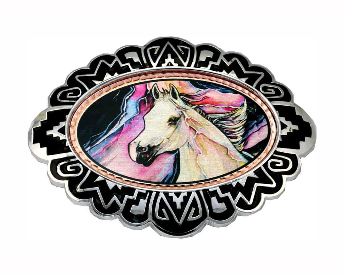 Colorful Horse Artwork Embellished Western Belt Buckle