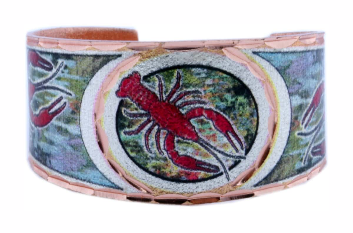 Crawfish ring artisan-crafted from copper in colorful crawfish design, one of the symbols of Louisiana. Purchase trendy handmade crawfish rings because they are so beautiful and you will not see them anywhere else. Louisiana crawfish copper rings are about 1.3 cm – 0.4 inches wide in the middle and fit most fingers sizes 6 to 10. We have to be proud of the jewelry we create and make so you will be happy and enjoy them.