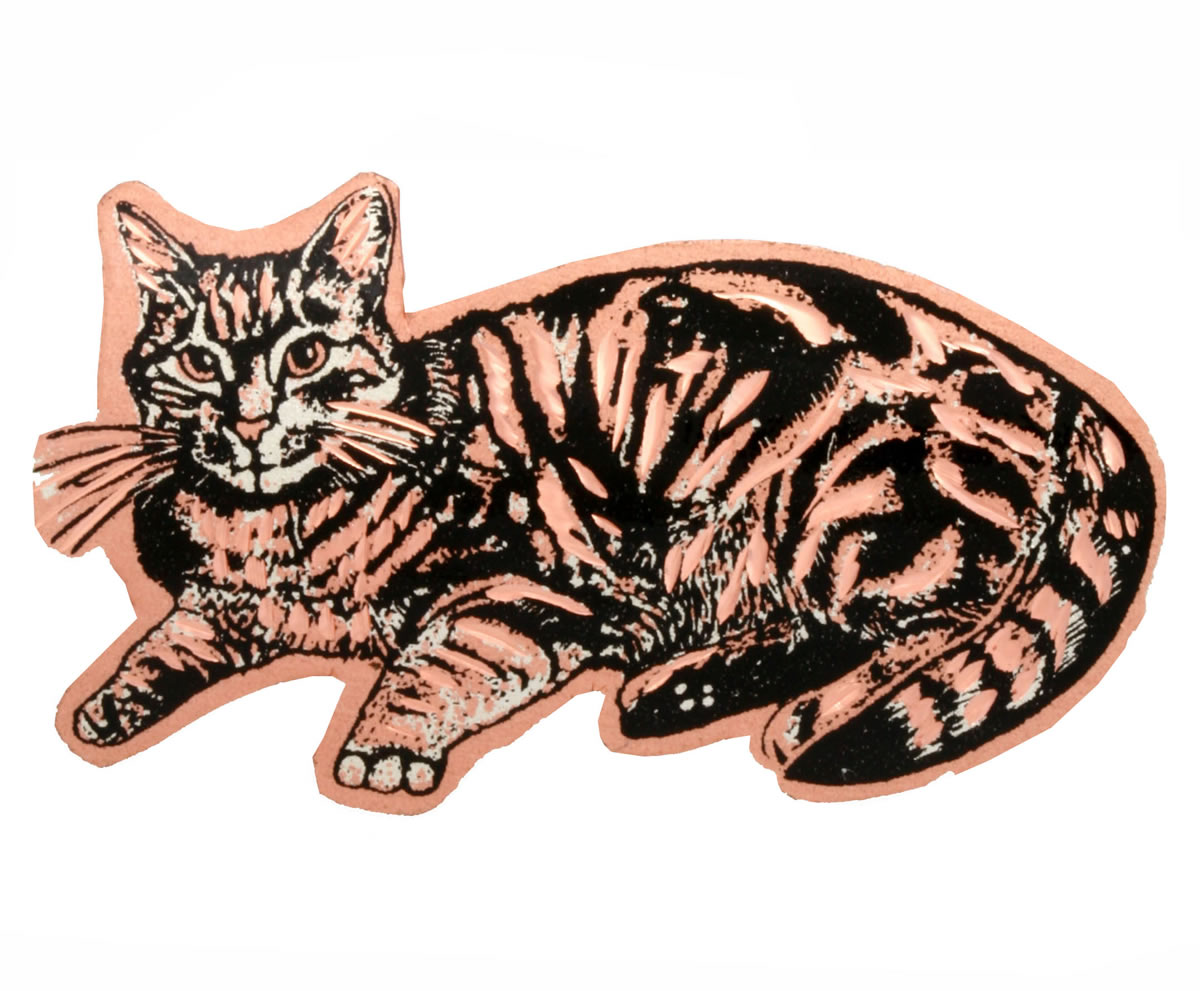 Unique handcrafted brooches are silver plated and diamond cut on copper by talented artisans in this lying tabby cat brooch design. If you are looking for a special gift for your friends to show them how much you care, Copper Reflections has wide collections of unique brooches and pins to choose from.
