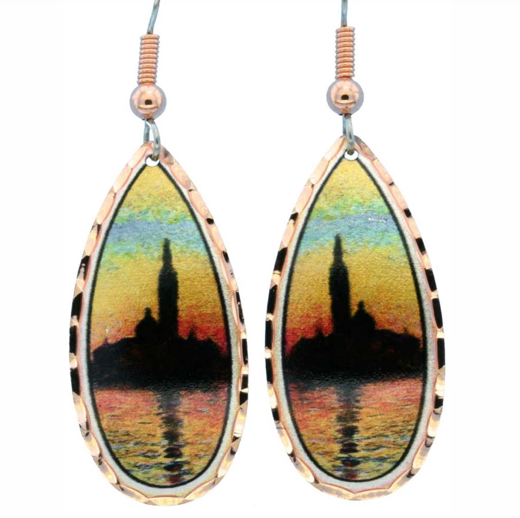 Monet San Giorgio Maggiore at Dusk earrings would be a great choice for art jewelry lovers. Claude Monet painted a view of the monastery island of San Giorgio from the south-eastern end of Venice. Monet says Everyone discusses my art and pretends to understand as if it were necessary to understand when it is simply necessary to love. Sunset in Venice earrings will be your favorite art jewelry to wear for a long time.