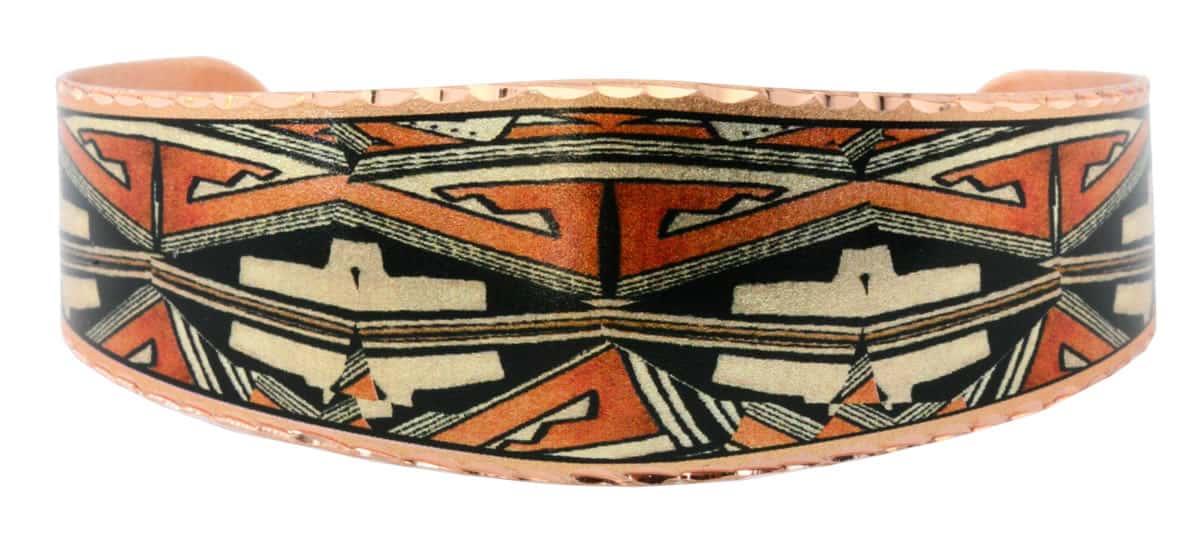 Pueblo bracelet is made from copper in an appealing mix of earth colors with diamond cuts by hand to sparkle for a luxurious look. You will receive a lot of compliments every time you wear this awesome Native Indian inspired bracelet. At Copper Reflections, we are dedicated to making your jewelry shopping experience a pleasurable one.