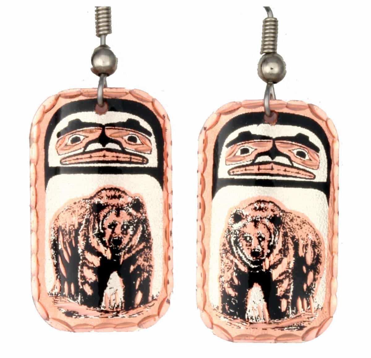 Attention jewelry enthusiasts! Elevate your style and make a statement with our stunning Native bear totem earrings. Handcrafted with utmost precision by Copper Reflections, these unique artisan earrings are unlike anything you’ve ever seen before. Made from high-quality copper and silver plated, these earrings are designed to stand the test of time without tarnishing. The diamond-cut finish adds a mesmerizing sparkle that will catch everyone’s eye. Plus, the surgical steel hypoallergenic ear wires ensure comfort and peace of mind.