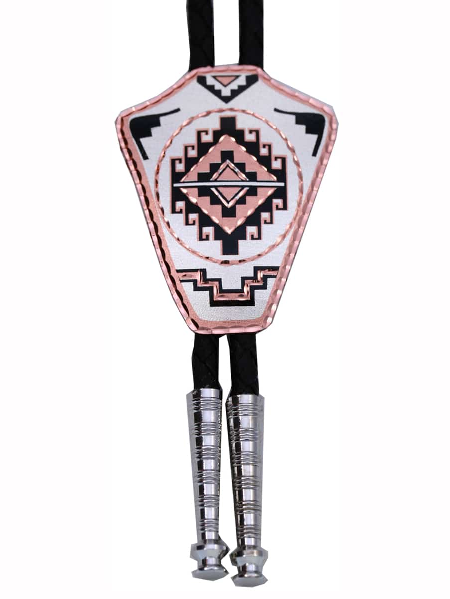 Southwest Cloud Native bolo ties are handcrafted, silver plated and diamond cut on copper in this unique arrowhead shape. This stunning bolo tie will never go out of style and would make a great addition to your trading post or gift boutique. The Southwest Cloud design represents hard work and determination to overcome adversity.