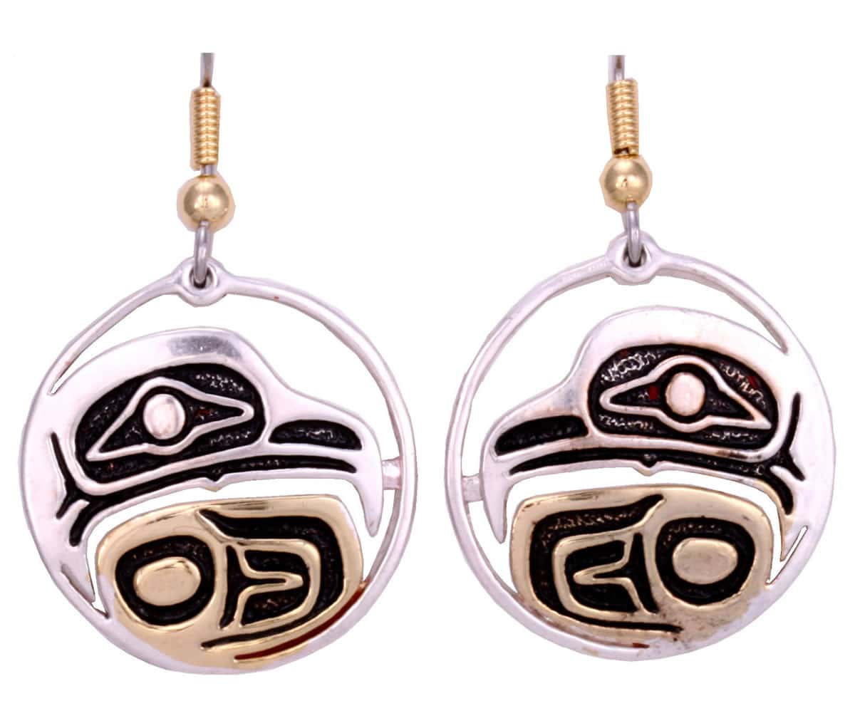 NW Native fashion eagle earrings created in silver and golden colors in stunning Haida designs. Shop stylish and fashionable eagle totem earrings that are very affordable and delightfully charming. The quality of the ear wires is very important as they are the part that is in contact with your skin all the time. We only use surgical steel hypoallergenic ear wires on our earrings as they are the safest ear wires, especially for women who have sensitive skin.