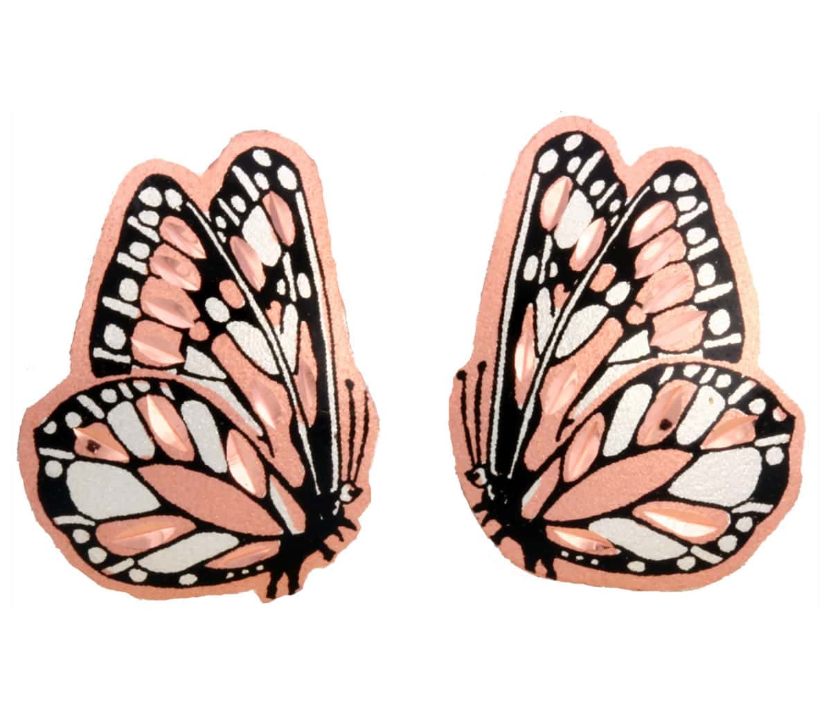 Looking for dainty earrings that beautifully reflect your unique sense of style? Look no further! Our copper butterfly wings stud earrings are individually diamond cut by hand to sparkle with every move. With lightweight and hypoallergenic surgical steel stud backings, they are safe to wear for even the most sensitive skin.