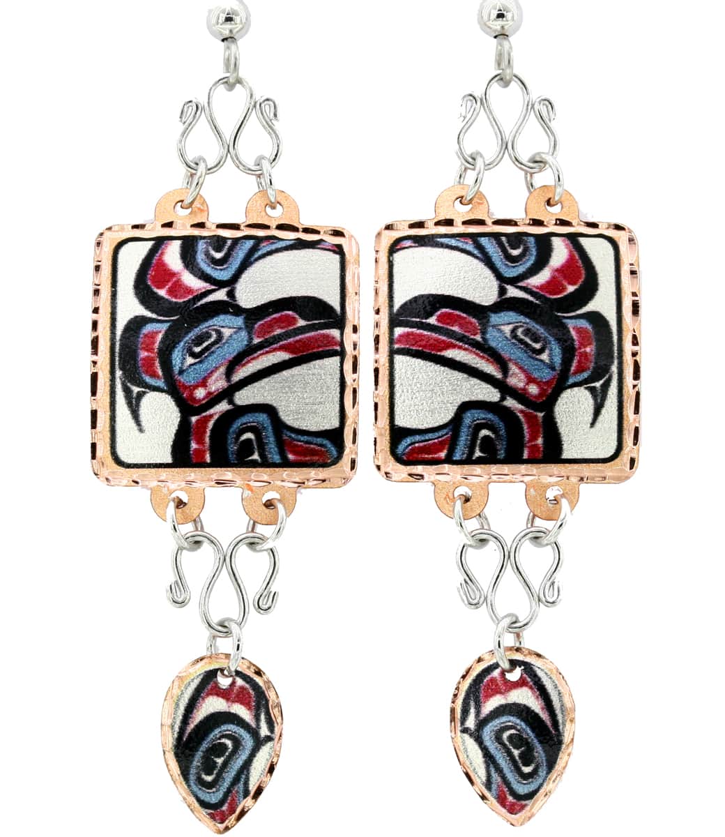 Northwest Native eagle earrings are made to impress everyone with their superior craftsmanship quality and originality of the artwork with dazzling colors. The earrings are beautiful and lightweight so you can wear them all day without hurting your ears.