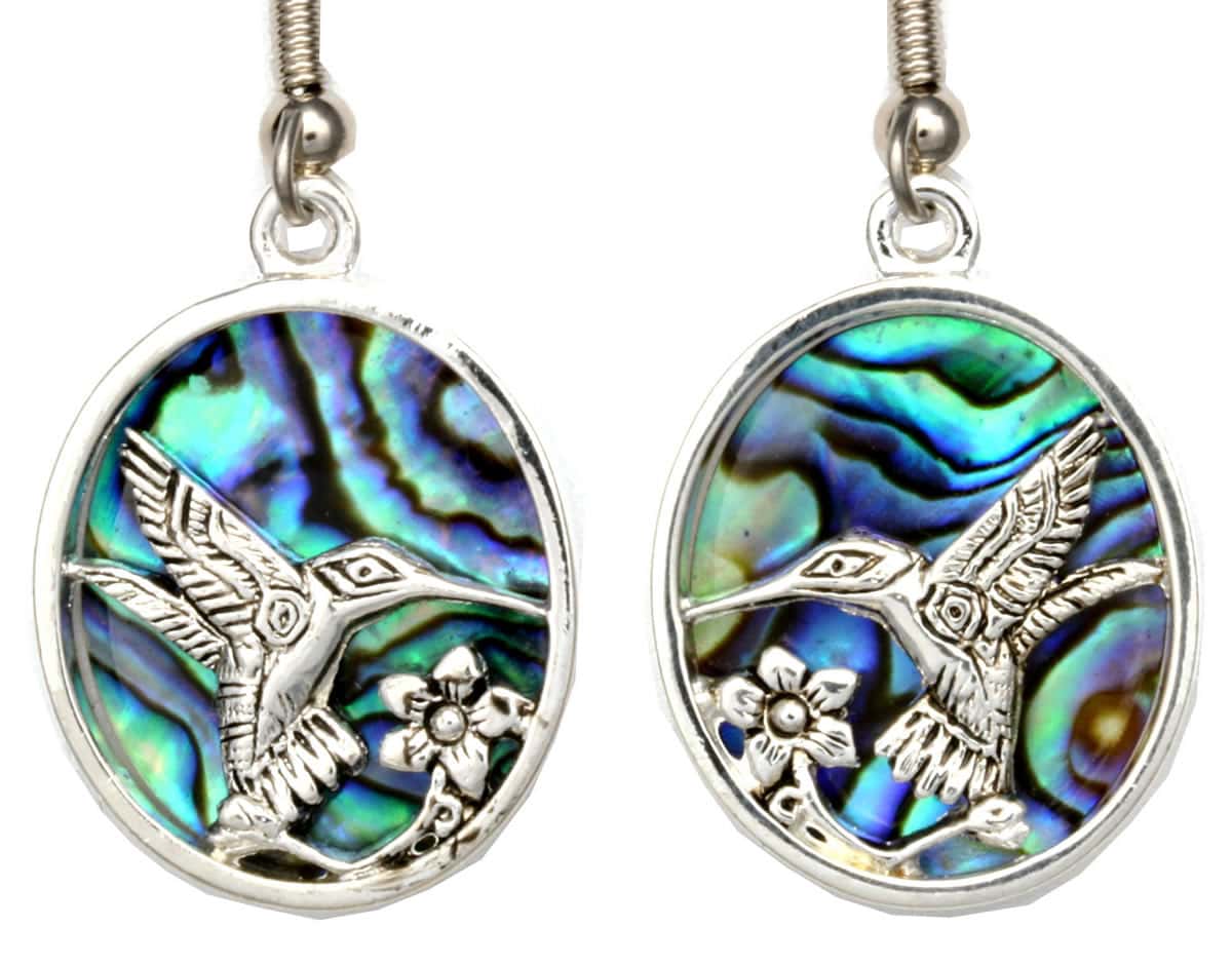 Abalone Inlay Silver-Plated Native Hummingbird Earrings