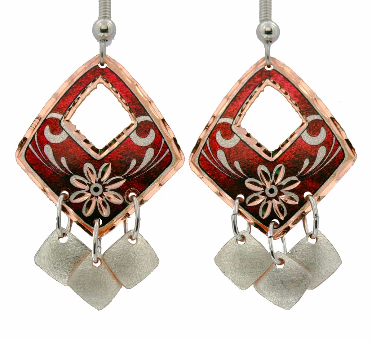 You will feel like a princess when you wear these pretty flower dangle flower earrings fashionably elegant and attractive. You will love the sparkles that come from diamond cutting by hand. Copper Reflections handmade earrings are made from high-quality materials including 99% pure copper and surgical steel ear wires. Buy dangle rectangular red flower earrings bright and shiny jewelry that is perfect for you.