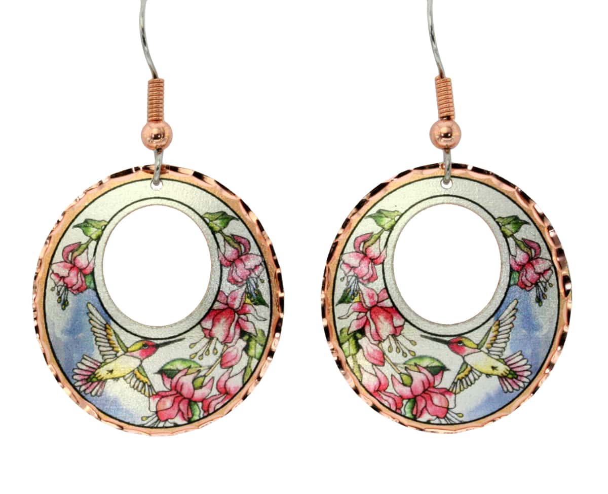 Introducing our stunning Hummingbird Hoop Earrings, a true masterpiece of craftsmanship by Copper Reflections. These unique handmade earrings are meticulously crafted from copper, silver-plated, and lacquer-coated to ensure they retain their exquisite shine for years to come. Featuring intricate diamond cuts, these earrings sparkle with every movement, adding a touch of elegance and sophistication to any outfit. The surgical steel hypoallergenic ear wires make them comfortable to wear all day long without causing any irritation. Impress your friends with the artisan-crafted sophistication of these earrings. Their delicate and mesmerizing design will leave everyone in awe.