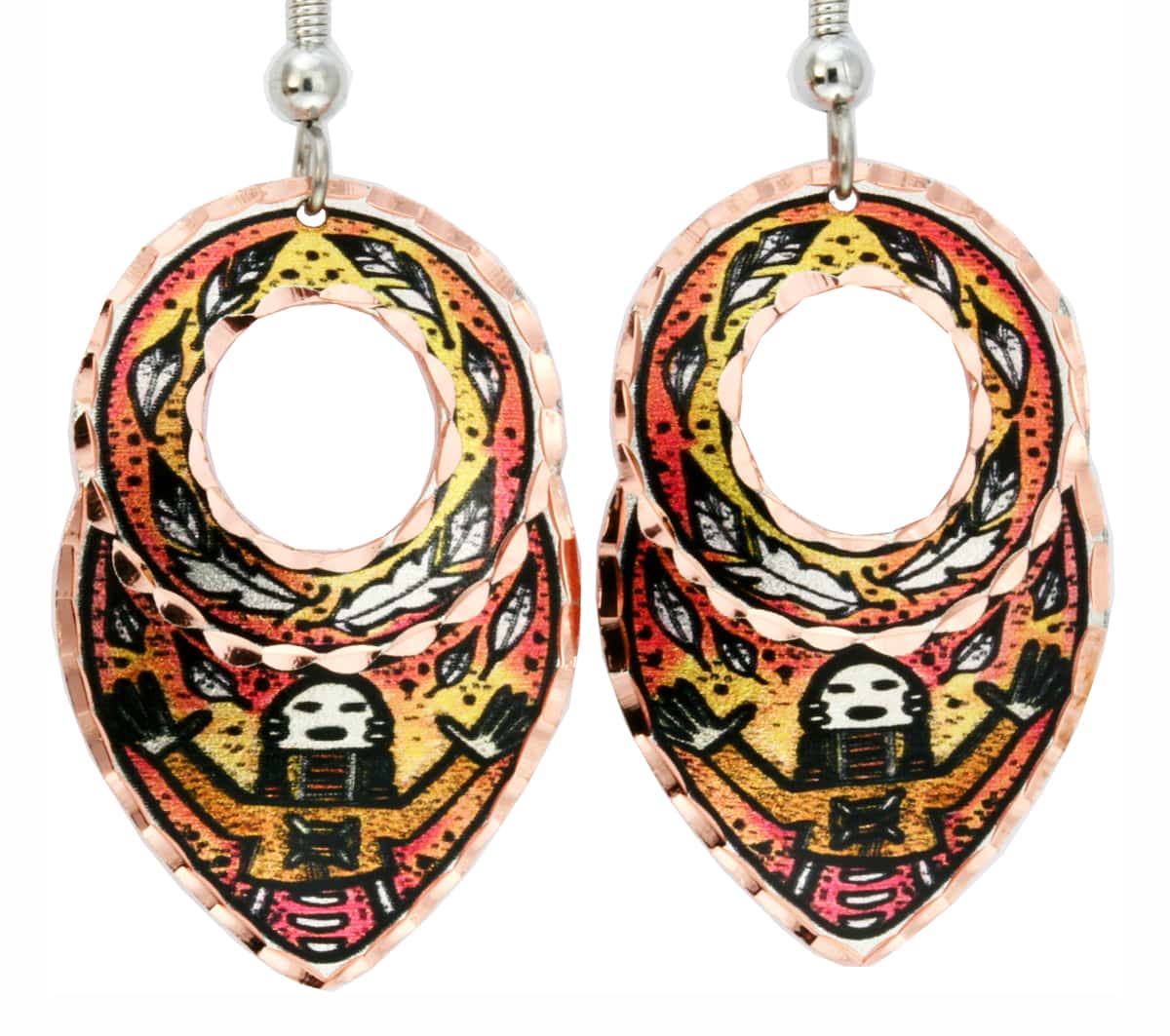 Inspired by the Navajo sand art, Lynn has created this unique artwork for these fabulous handmade earrings. The artisans of Copper Reflections silver plate and diamond cut to add sparkle to these unique earrings.