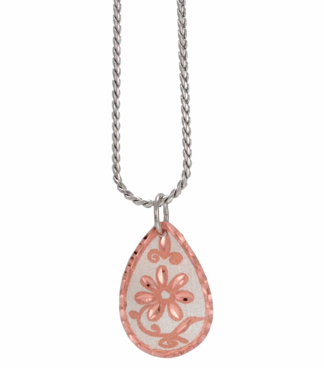 Handmade flower necklaces are individually handcrafted, silver plated and diamond cut on copper pendants in daisy flower jewelry design with a silver background.