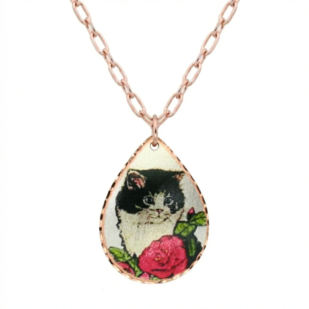 Handmade from copper and beautifully silver-plated, this intricate design is brought to life with vibrant, translucent artwork. Skilled artisans use exquisite diamond-cut techniques to make the pendant sparkle, catching the light and giving it a high-end, luxurious look. It is paired with a beautiful 20-inch-long copper-tone chain. Best of all, no polishing is required! Our pendants are protected by multiple layers of a durable acrylic finish, ensuring your exquisite piece remains as bright as the day you bought it.