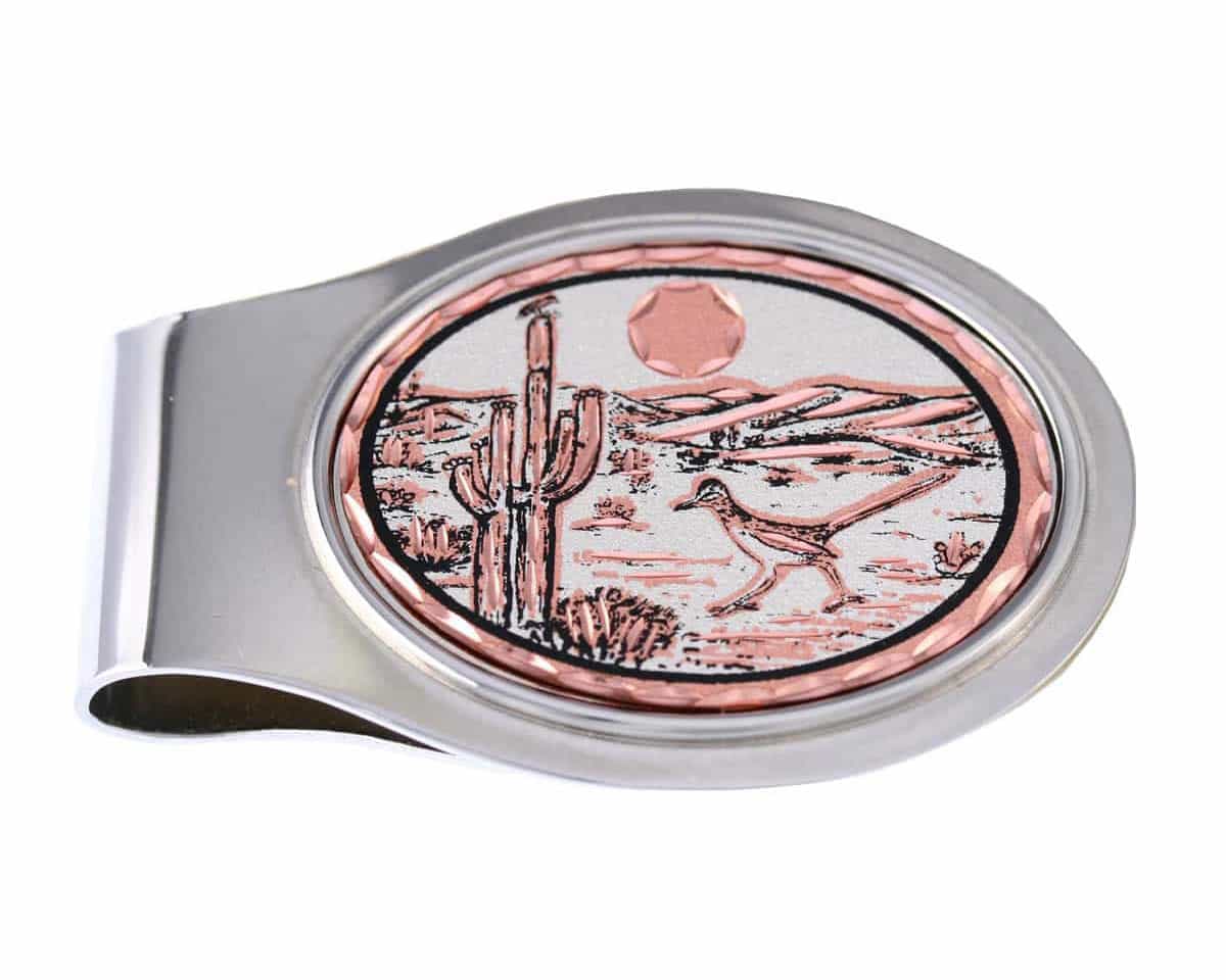 Southwestern American desert and roadrunner scene money clips offered exclusively by the artisans of Copper Reflections will make unique gifts and souvenirs of the Southwest. Copper Reflections has been offering money clips for western gift shops and trading posts in Canada and the United States since 1985.