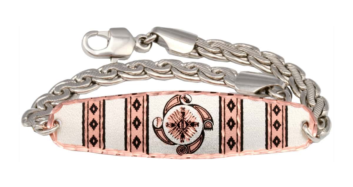 Southwest Native inspired chain bracelets are individually handcrafted, silver plated and diamond cut on copper in this Southwest Native four elements motif representing the earth, wind, fire and water.